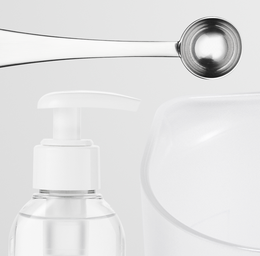 Le kit inclut : l’appareil de production, un flacon spray 500 mL, un concentré de 100 mL et une cuillère doseuse. Tous les éléments nécessaires pour produire et appliquer la solution en toute simplicité sont réunis dans un format pratique.