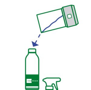 Transférez la solution désinfectante dans le flacon spray et pulvériser sur les surfaces.